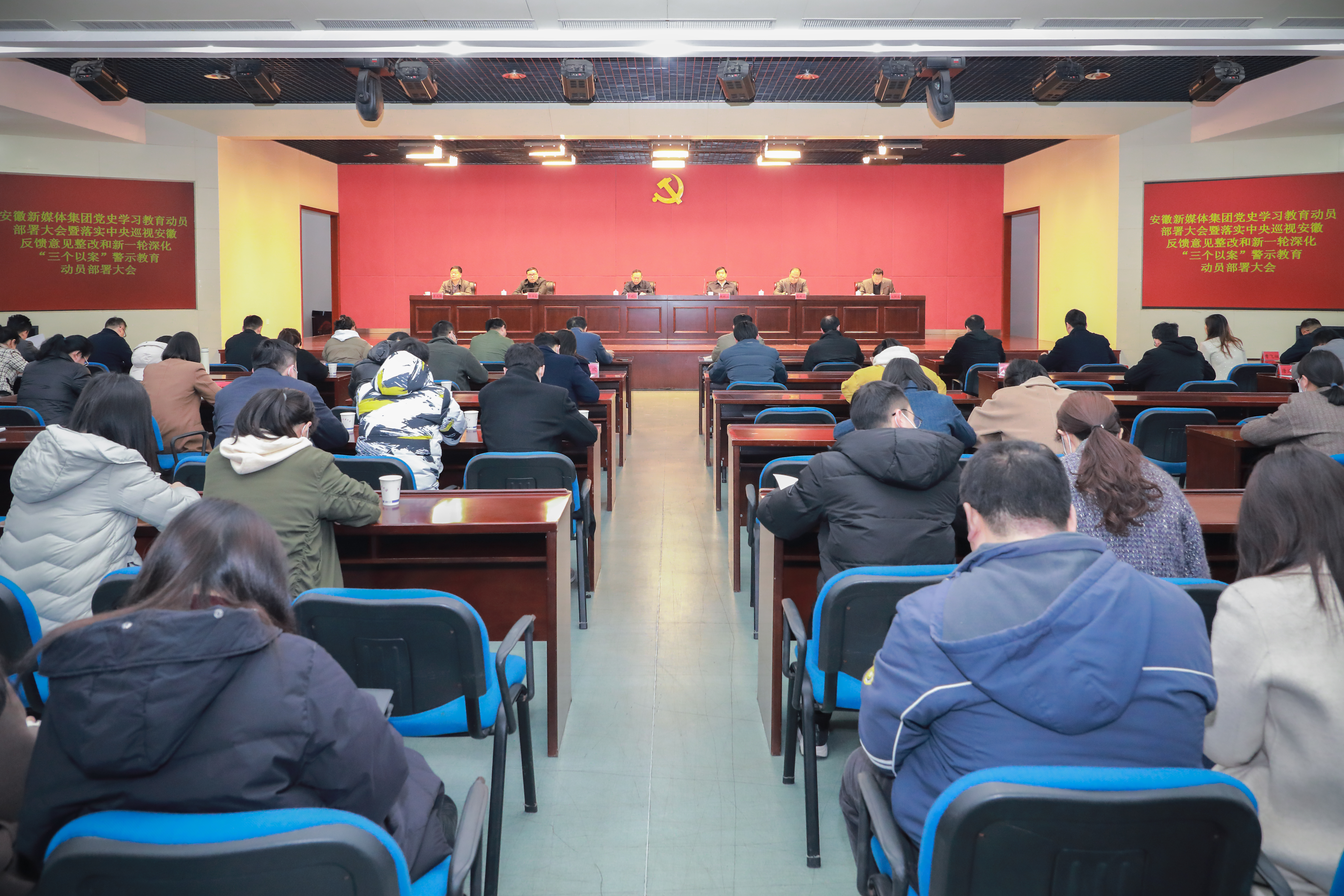 會議由集團黨委委員、工會主席李先鋒主持。會上,集團黨委委員、紀委書記王劉生宣讀了《中央巡視組巡視我省反饋意見安徽新媒體集團整改方案》和《安徽新媒體集團關于開展新一輪深化“三個以案”警示教育的工作方案》。