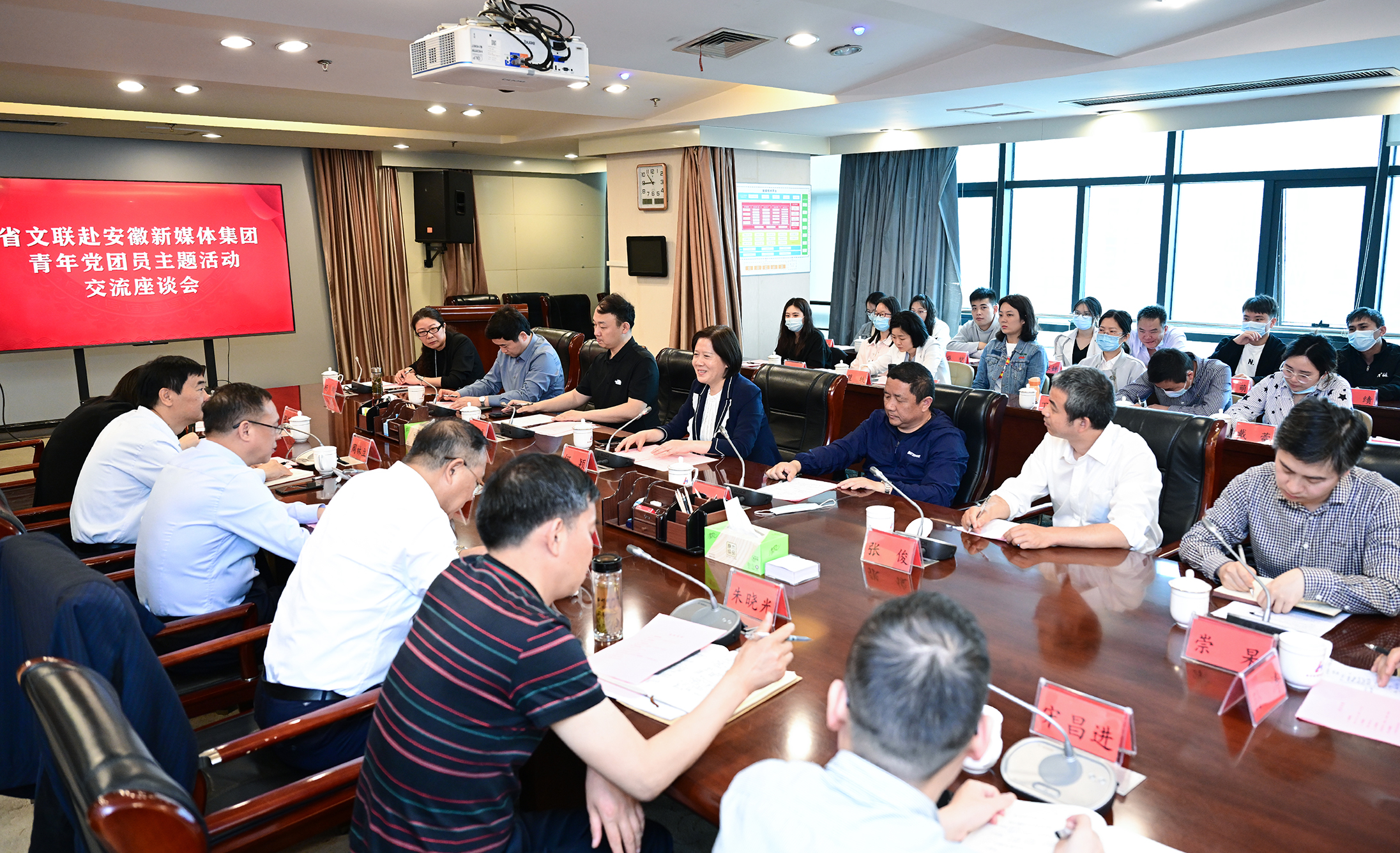 5月19日上午,安徽省文聯(lián)黨組書(shū)記、書(shū)記處第一書(shū)記何穎率省文聯(lián)相關(guān)協(xié)會(huì)負(fù)責(zé)人及部門(mén)工作人員赴安徽新媒體集團(tuán)開(kāi)展“青年黨團(tuán)員主題活動(dòng)”交流座談會(huì)活動(dòng)。